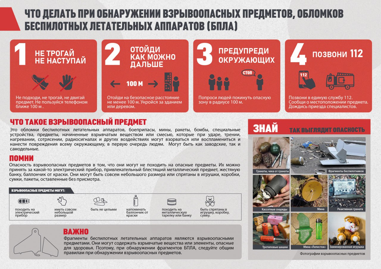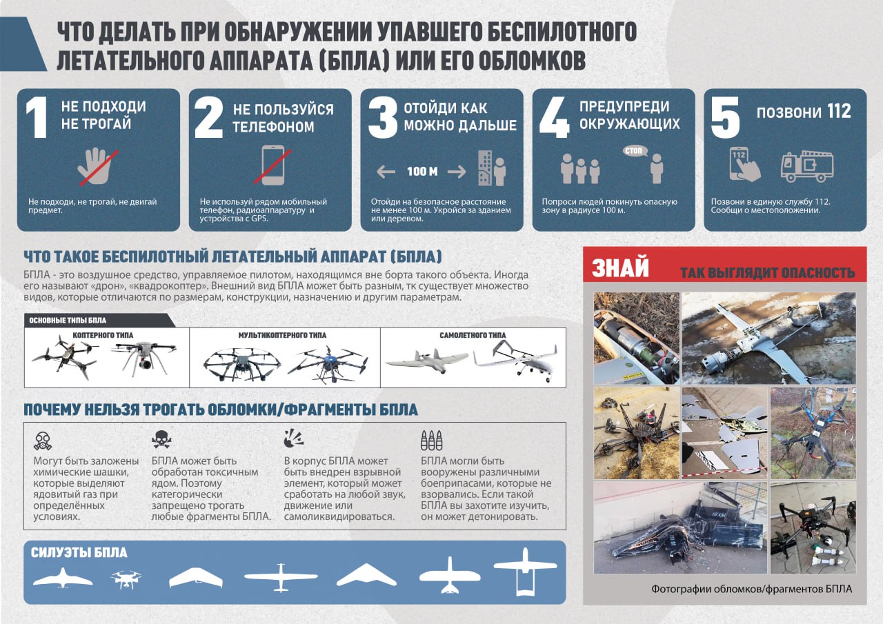 - Не снимайте и не трогайте: Категорически запрещено фотографировать, снимать на видео или трогать дрон/его обломки. Они могут быть взрывоопасны.