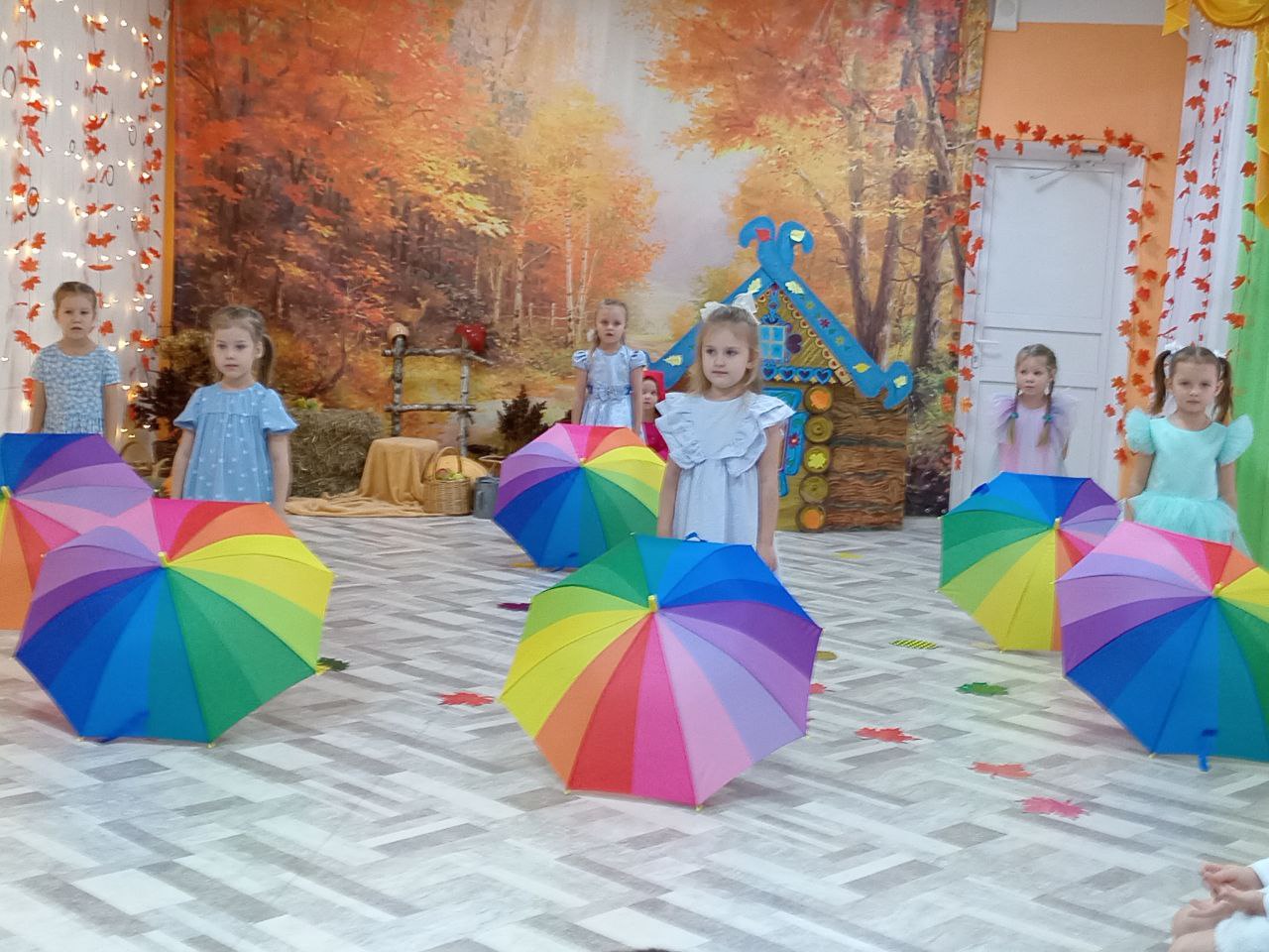 • Веселые песни и танцы: Дети с удовольствием пели песни о желтых листочках, грибах и осеннем дождике, кружились в хороводах и танцевали зажигательные осенние танцы.